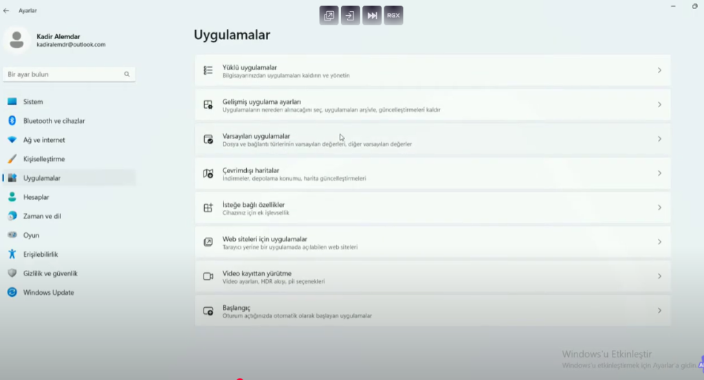 • Sol tarafta bulunan “Uygulamalar” seçeneğine tıklayın.
