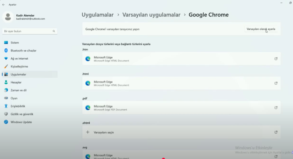 Chrome Varsayılan Tarayıcı Yapma 2025